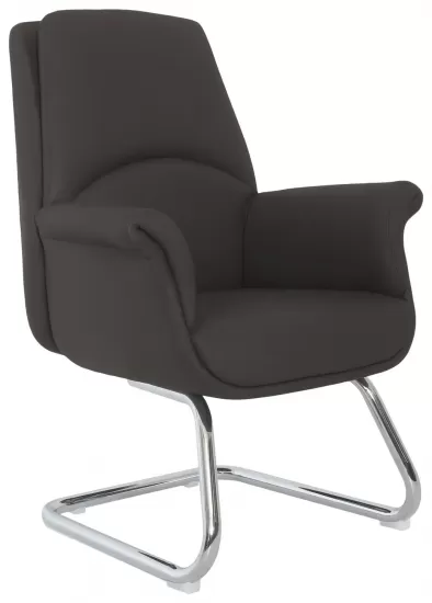Конференц-кресло Skin отличается компактными размерами и выполнено в современном стиле, поэтому оно отлично подойдет для большинства деловых интерьеров. Монолитный стальной каркас может выдержать пользователя весом до 100 кг, а хромированное покрытие не только придает мебели стильный вид, но и защищает металл от коррозии. Особая форма спинки с изгибом обеспечивает правильную поддержку тела, а обивка из сетчатой ткани гарантирует стабильный воздухообмен. Сиденье стула обито натуральной кожей черного цвета. Для дополнительных удобств есть подлокотники с пластиковыми накладками.