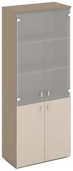 Шкаф высокий широкий (2 низких фасада ЛДСП + 2 низких фасада стекло) / ES.ST-1.4