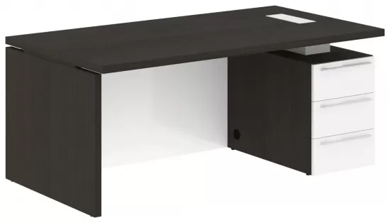 Стол руководителя правый- Дуб Мореный/Белый Глянец