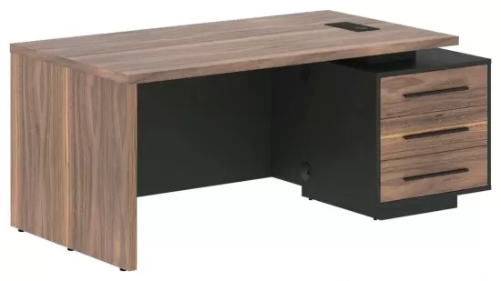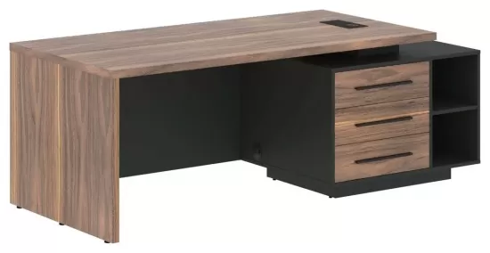 Стол руководителя правый- Американский орех/Яшма черный